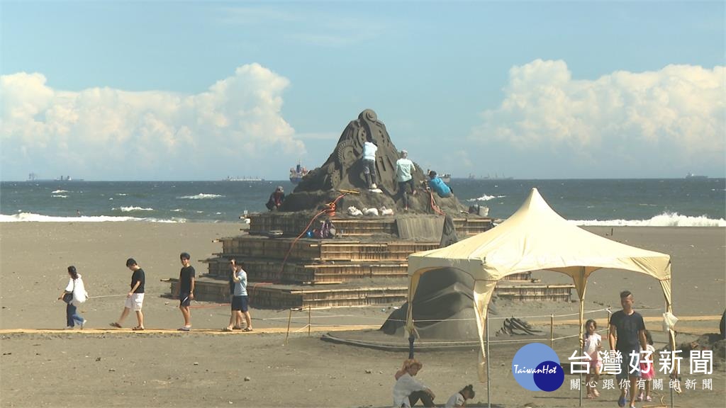 開幕進入倒數階段,原本快完工的沙雕,這波豪雨已經造成傷害,工作人員就靠著搭帳篷和努力上環保膠,讓沙雕固定,沒想到,豪雨造成的破壞,才剛修好,「瑪莉亞」強颱接力報到,這對沙雕來說,才真的是場大考驗。