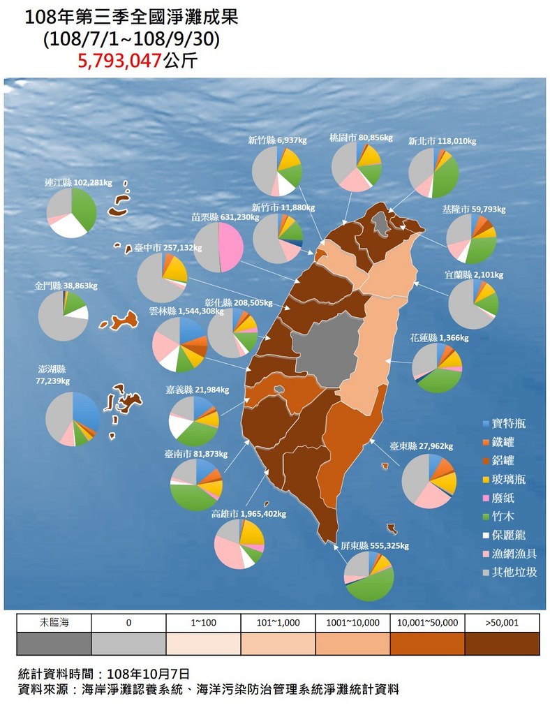 海洋委員會海洋保育署今天(8日)公布,今年第3季海洋廢棄物清除量,包含淨灘、海漂及海底,總共清理海洋垃圾超過6020公噸。