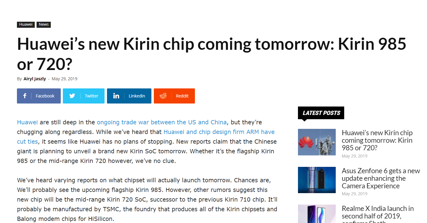 如果結合此前的傳言我們肯定會以為新推出的芯片是海思麒麟985,但事實卻似乎不是這樣。據聞,華為將要在5月30日發布的芯片其實是定位中端的海思麒麟720,從命名來看不難看出其實就是麒麟710的升級版。