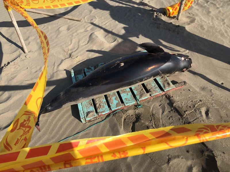 苗栗縣竹南鎮塭仔頭安檢所的海岸沙灘,2號發現一隻鯨豚屍體,身上有多處的擦傷及圓型傷痕。中華鯨豚協會人員抵達,確認是國內列為保育類的江豚,屬於「露脊鼠海豚亞種」,研判身體虛弱,曾遭漁業行為誤傷及鯊類攻擊而擱淺死亡。